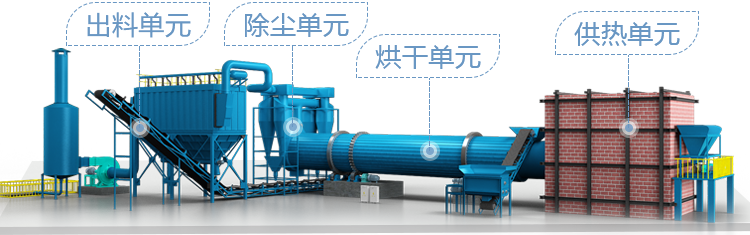鼎力煤泥烘干機(jī)主要由熱源、喂料裝置、帶式上料機(jī)、回轉(zhuǎn)滾筒、帶式出料機(jī)、引風(fēng)機(jī)、除塵器和配電柜構(gòu)成。